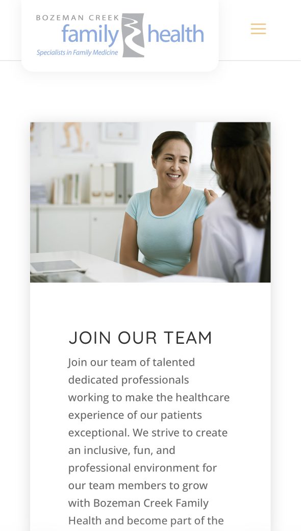 Design a modern, mobile-friendly website that demonstrates Bozeman Creek Family Health’s high-quality patient care.