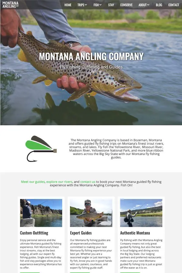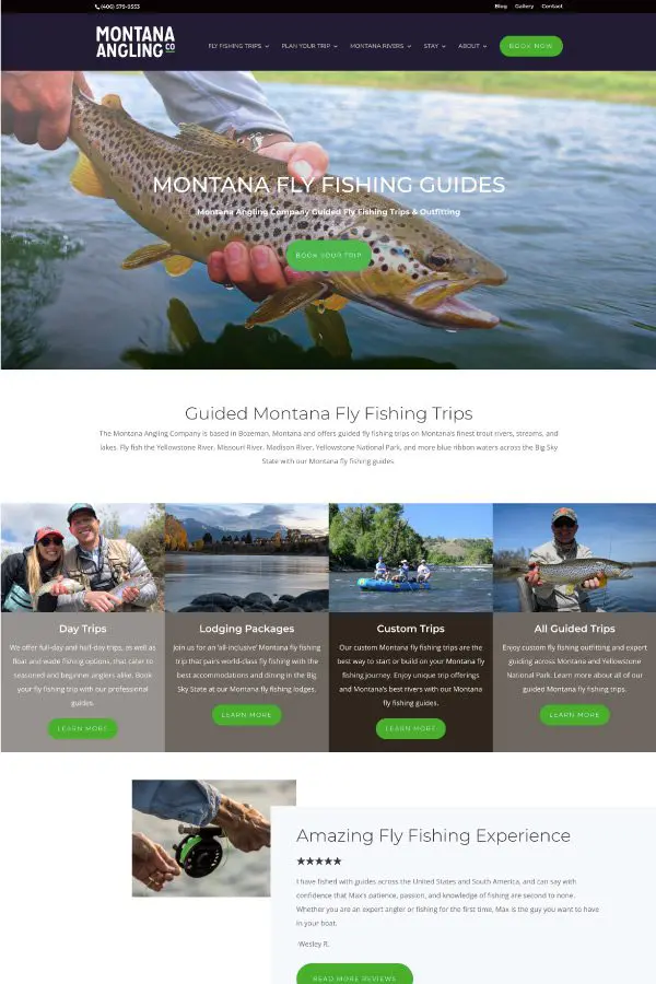 Montana Angling Company provides fly fishing trips around the Yellowstone, Missouri, and Madison Rivers. They offer expert guides for fishing spots near Yellowstone National Park and assorted blue ribbon rivers across the Big Sky State. Max Yzaguirre, Owner and Outfitter of the Montana Angling Company, desired to elevate the Montana Angling brand so they stood out within the highly competitive field of guided fly fishing services. Max wanted more people to find them on search engines (like Google), convert more visitors into customers, and better showcase their fantastic guided trips. So when Max reached out to Big Storm for help reaching these goals, we were honored and excited to take on this challenge. We couldn’t wait to transform their website to boost customer satisfaction, engagement, retention, and, most importantly, book more guided fly fishing trips.